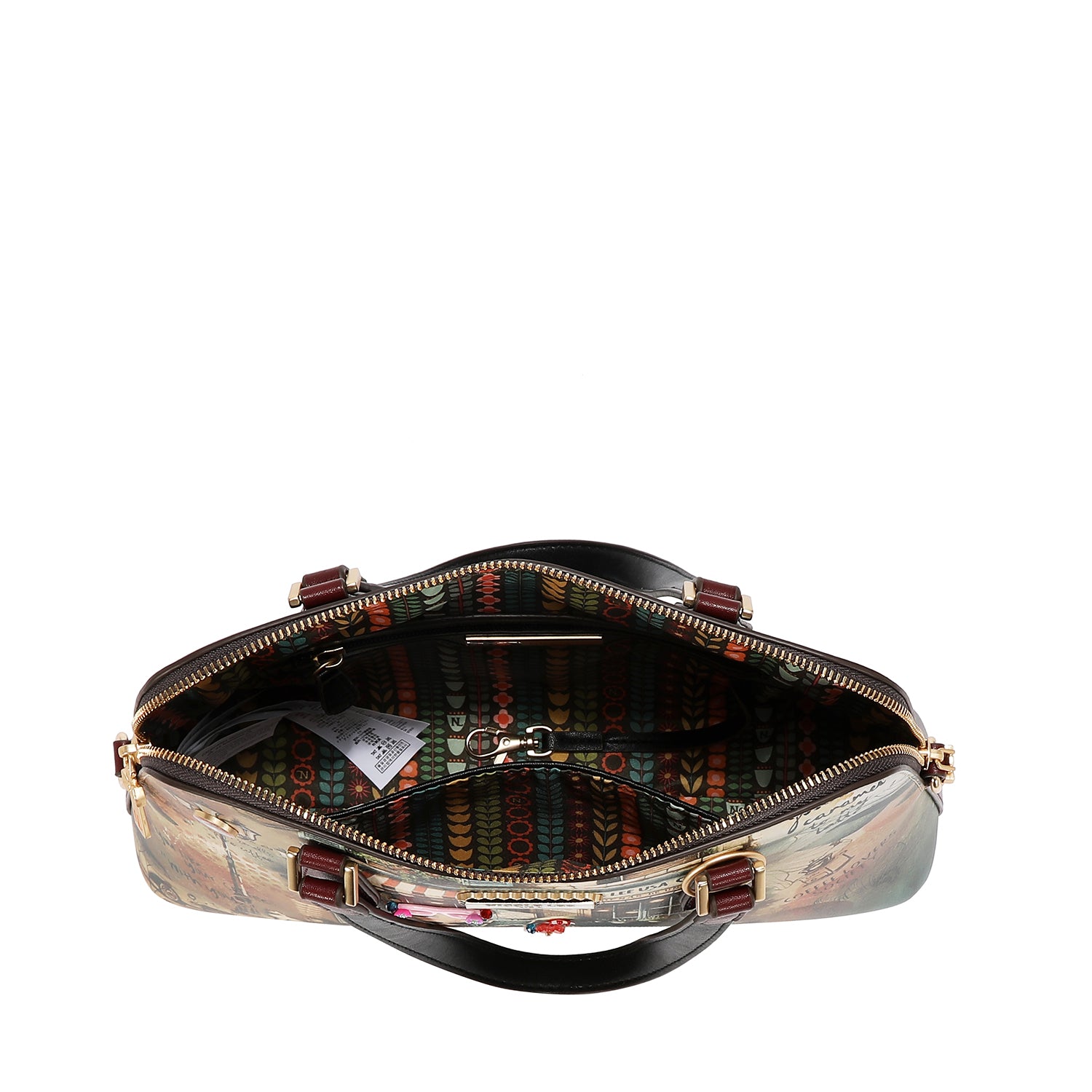 Our Virtual Friend Satchel Bag brings meaningful elements surrounding her, symbolize the digital world and the virtual connections that exist all around us.
