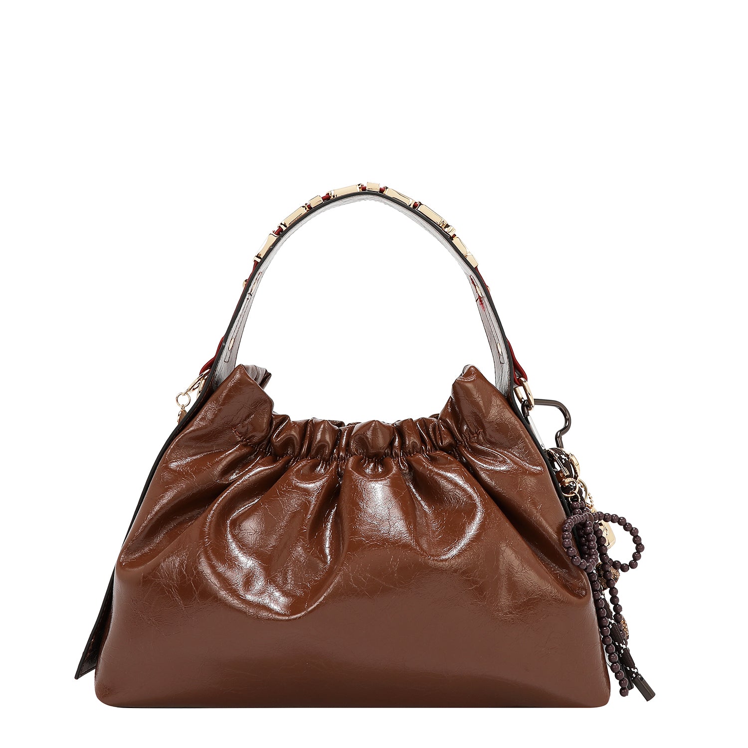 Effortlessly chic and endlessly versatile, the Shimmer Luxe Top Handle Bag is your everyday companion, blending sleek glossy finishes with a touch of playful charm for a look that’s as sophisticated as it is functional.