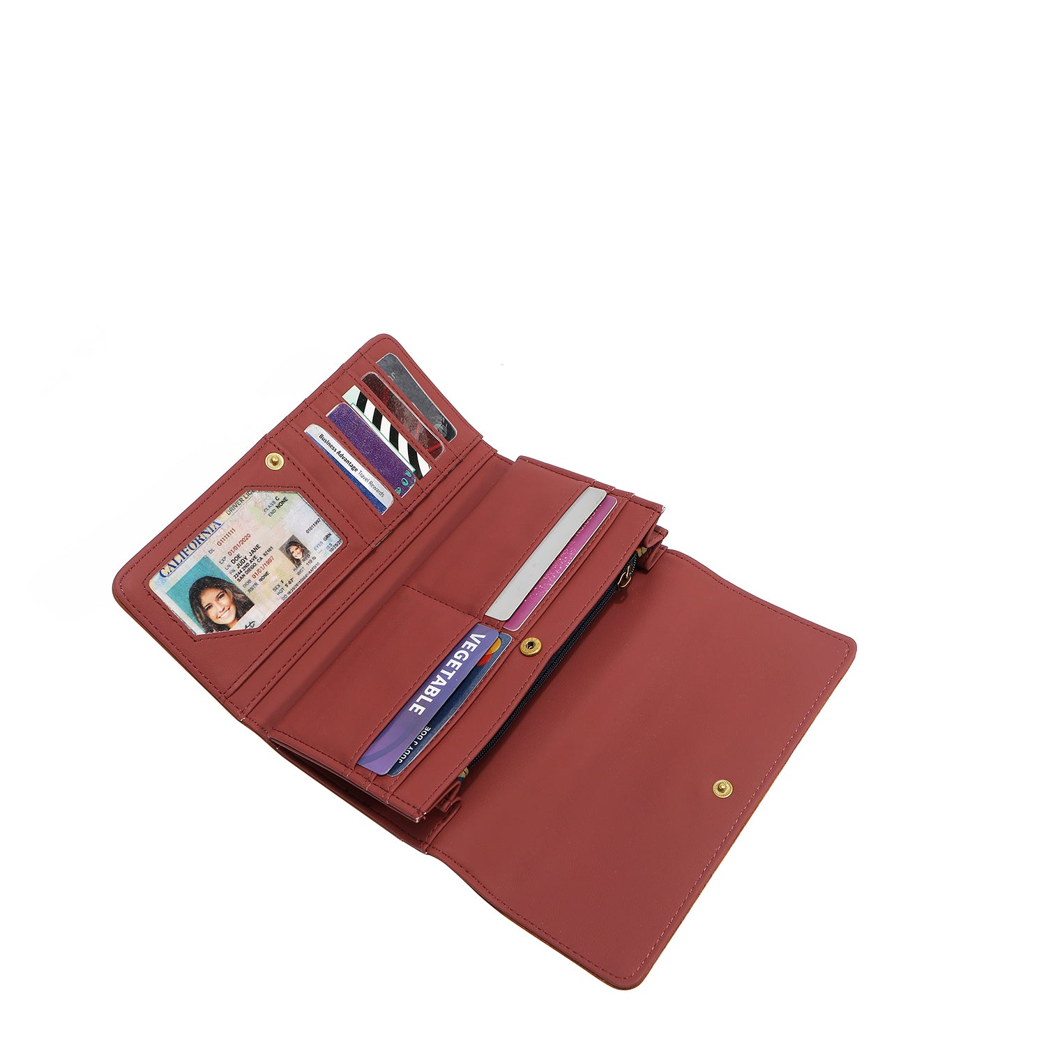 Designed for beauty and balance, the Floral Leaf Compact Wallet keeps your essentials close with multiple card slots and a graceful kiss-lock closure. Finished with a heart-shaped ID window, it’s a love letter to refined femininity.