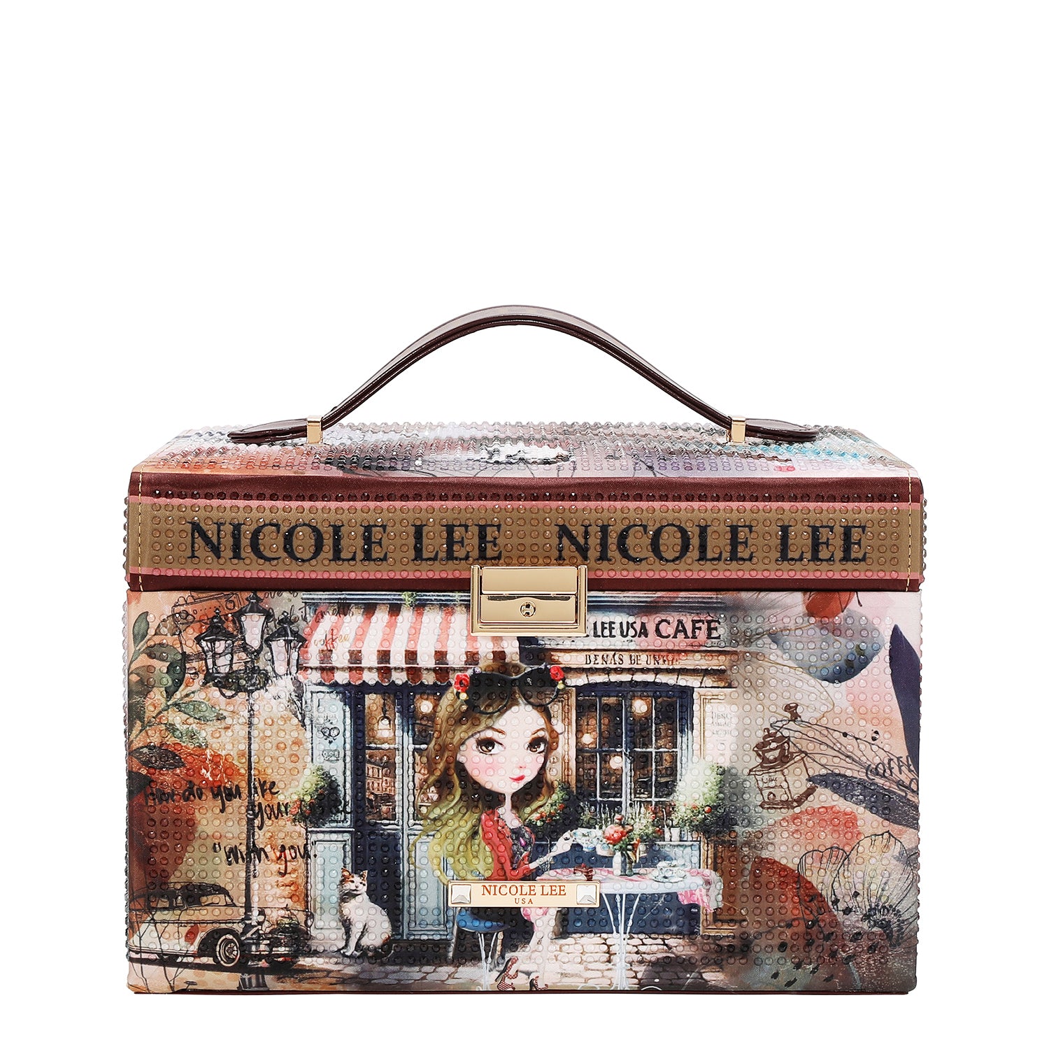 • Rhinestone vegan leather exterior with soft velvet interior lining
