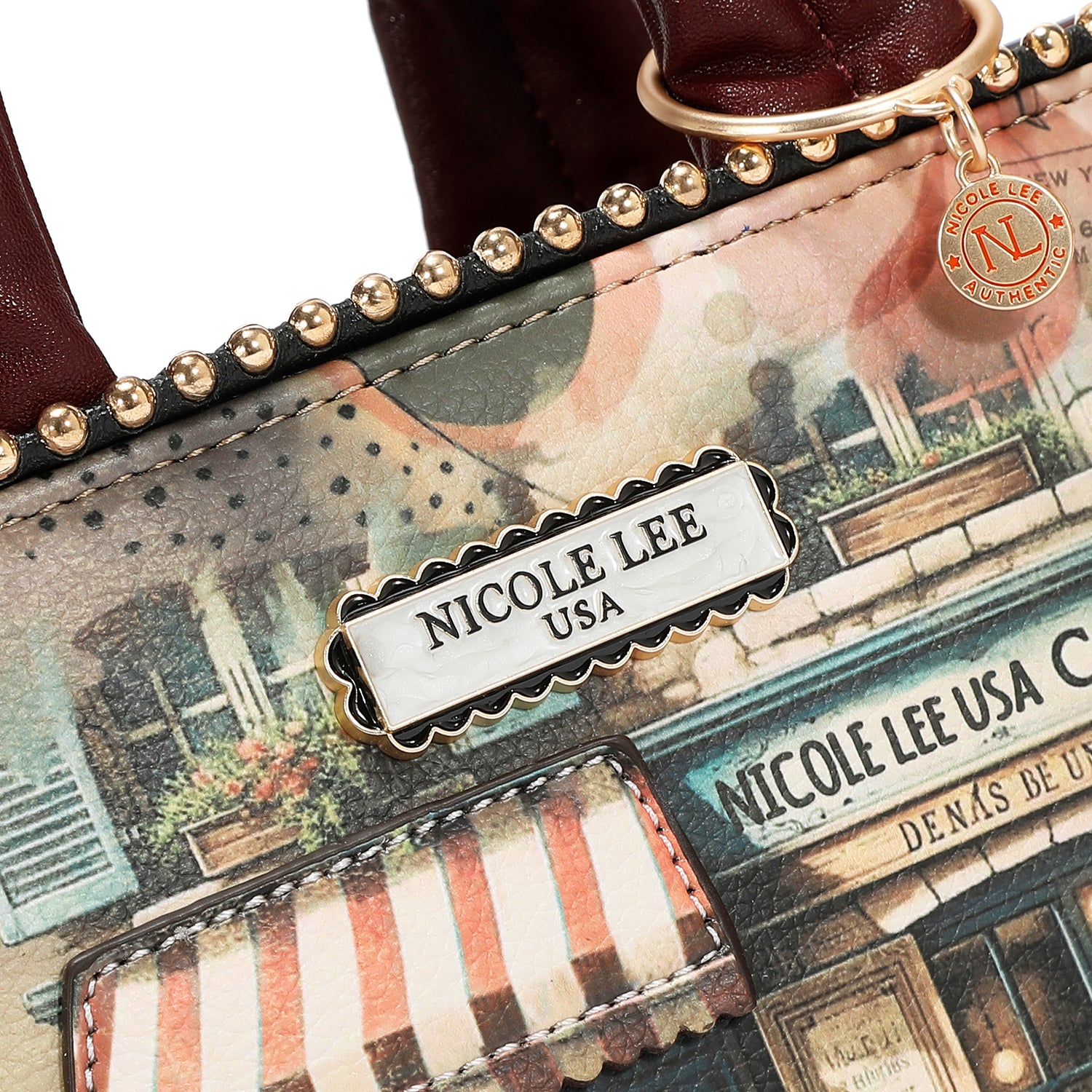 - Dual top handles (3" drop) with Nicole Lee authentic circle charm